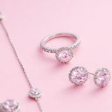 Halo Setting Pink Solitaire Ring 光環碎鑽粉红戒指 (JR077)