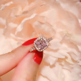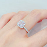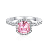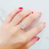 Pink Cushion Halo Pave Solitaire Ring (JR075)