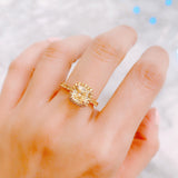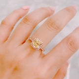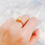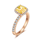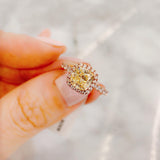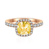 10K Rose Gold Yellow Cushion Halo Pave Solitaire Ring (10KR019)