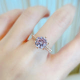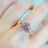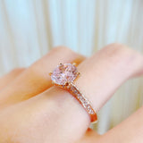 10K Rose Gold Classic 6 Claws Pink Pave Solitaire Ring 10K金經典六爪粉紅碎鑽戒指 (10KR005p))